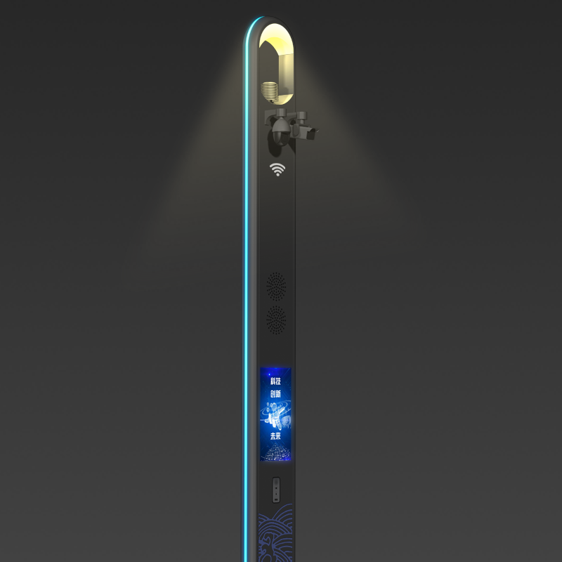菲尼特智能智慧燈桿不僅擁有基本的智能照明功能,還集信息發布功能、信息采集功能、信息傳輸和控制功能、綠色新能源充電、環境監測等于一身,通過配備的戶外小間距LED顯示屏、攝像頭、無線WiFi,可實現 LED 路燈照明、LED 顯示屏顯示、通訊與控制、 視頻監控、人/物監測、USB應急充電和緊急呼叫等不同應用。